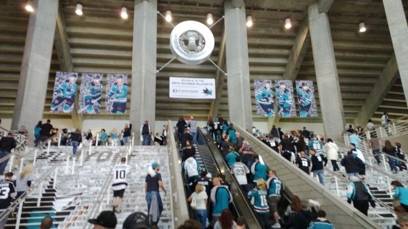 Sharksit voitti 2-1 ja tasoitti voitot 3-3, nyt myöhemmin ne sitten meni, hävis ja tippu, joten olipa onni, että oltiin just tuossa pelissä paikalla.