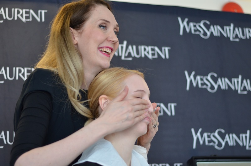 YSL:n meikkaaja Janita loihti mallille meikin käyttäen BB-voidetta ja Baby Doll-sarjan meikkejä.