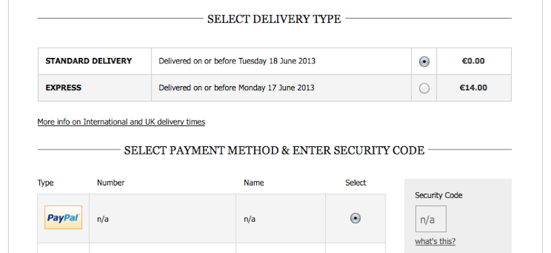 Maksaminen tuolla tapahtuu joko luottokortilla, tai PayPalin tilin kautta. Myös Visa Electron käy. Kannattaa pitää mielessä muutenkin nettikaupoissa asioidessa, että usein Visa Electronilla saa tilattua, vaikkei varsinaista VISA-korttia omistaisikaan, kunhan laittaa kortin tiedot vaan siihen VISA-kohtaan. Tai kannattaa ainakin kokeilla. Kortit ja toimitusosoitteet yms. tiedot voi kätevästi tallentaa tuonne myös seuraavaa kertaa varten.