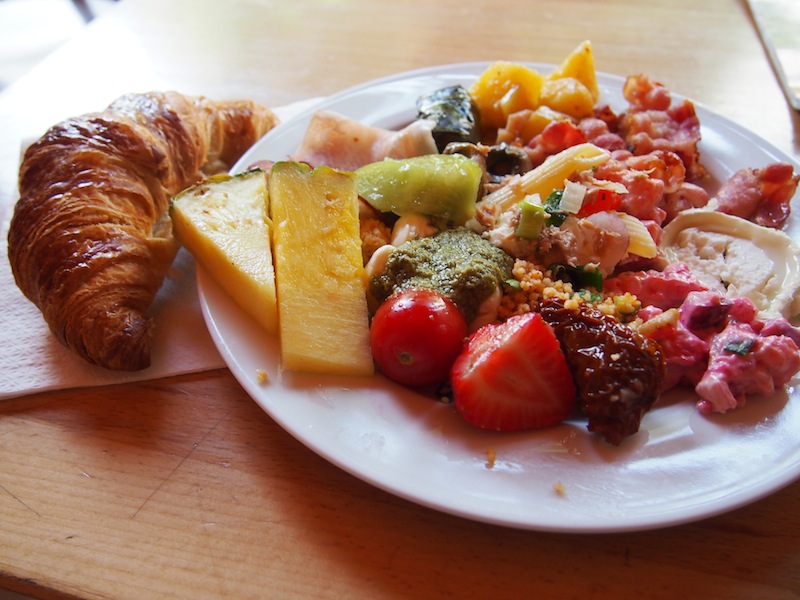 Lone Star Taqueria on siis Mexicolainen ravintola, mutta brunssilla ei ainakaan perus nachoja ja muita tarjoiltu, vaan pöydässä oli mitä erikoisempia Mexico-herkkuja kuin myös pekonia, munakokkelia, croisantteja ja muuta perinteisempää aamupalamättöä. Itse lastasin lautaselle vähän kaikenlaista ja tuli oltua kyllä monesti jännän äärellä, kun maisteli niitä ei niin tuttuja makuja ja ei ollut aina ihan varma mitä suuhunsa laittaa, tai onko tulossa edes makea vai suolainen maku. Erityispisteet kattavasta hedelmätarjonnasta, merenelävistä (paellaakin oli tarjolla) juustoista ja jälkkäreistä!
