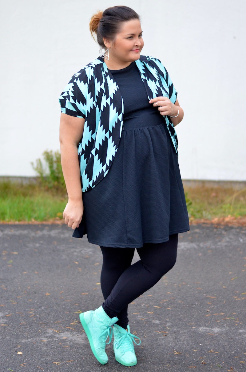 Minttu ja musta toimi tosi kivasti, ei tullut yhtään raskas kokonaisuus, vaikka tuo mekko aika ”raskas” yksinään onkin!