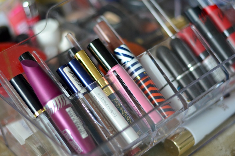 Menossa on siivouspäivä täällä kotona ja nyt meni hermot! Mullahan on siis todella älytön määrä värikosmetiikkaa, eli siis meikkejä. Ostin IKEAsta taas yhden säilytyslaatikon, joka täyttyi ympäriinsä pyörineistä meikeistä hetkessä. Mulla on myös iso Malm-lipasto niin ikään IKEAsta, jonka ylin laatikko on täynnä meikkejä lajiteltuina zip lock-pusseihin ja erilaisiin laatikoihin, mutta silti niitä huulipunia, luomivärejä, huulikiiltoja ja poskipunia tuntuu löytyvän aivan joka paikasta (paitsi toki just sillon sitä tiettyä huulipunaa, minkä tarvitset löytää kovassa kiireessä ei tunnu kyllä löytyvän sillä hetkellä mistään! :D).