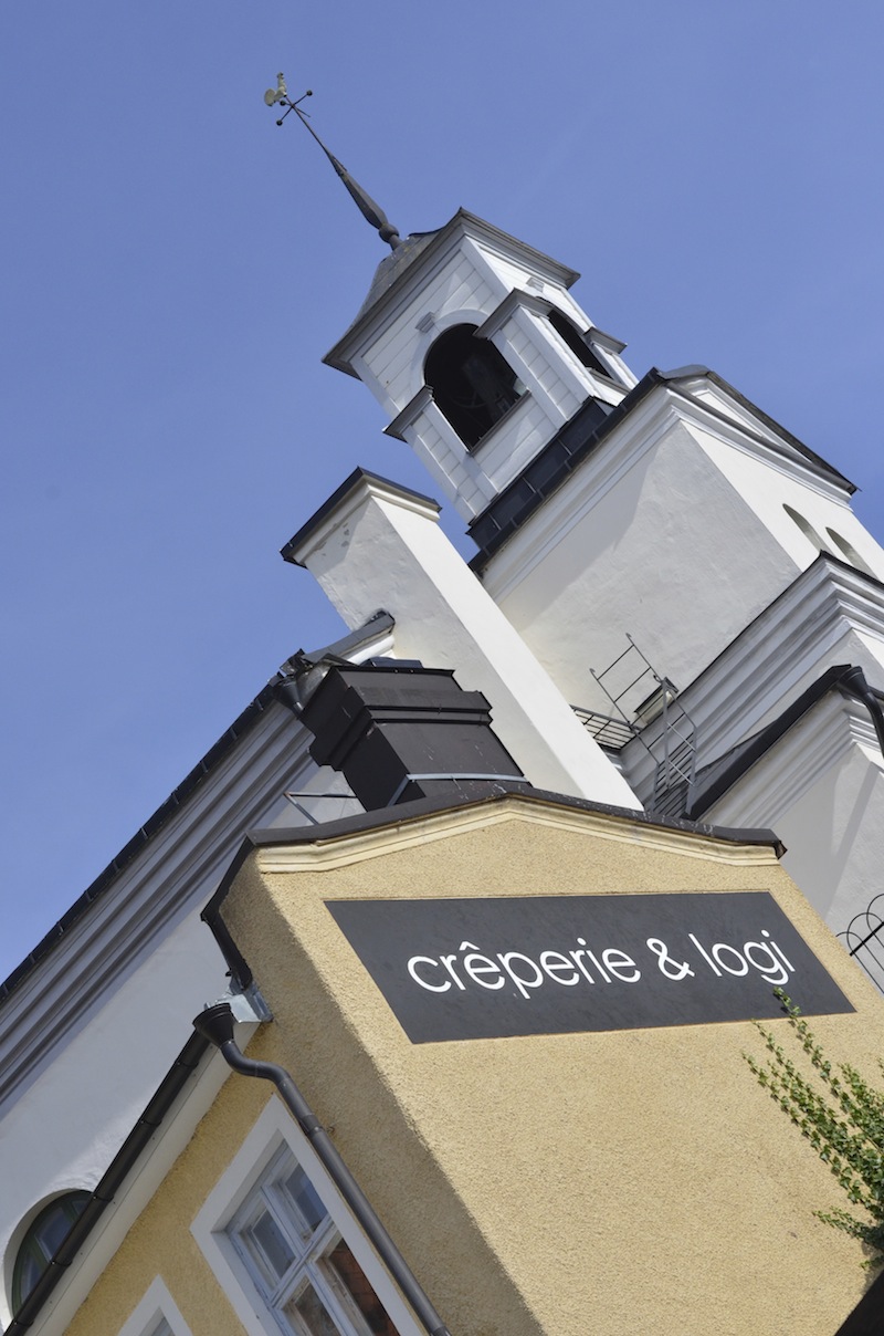 Lupailin aivan omaa postausta vielä kantispaikaksi Visbyssä muodostuneesta ravintolasta, eli Crêperie & Logista. Vierailimme nautiskelemassa lettuja, eli galetteja kahdesti ja muistelen kyllä noita tattarijauhoon pyöräytettyjä ymmärtääkseni ihan kokonaan gluteenittomia herkkuja edelleen vesi kielellä. Peppi painelikin heti lentokentältä suoraan ostamaan itselleen kunnon crêpes-pannun, lettukestikutsua siis odotellessa… Itse nautiskelin ekalla kertaa vuohenjuusto-kana-hunaja-paahdettumanteli-täytteisen letun ja jälkiruoaksi otettiin Pepin kanssa vielä puoliksi valkosuklaa-mansikka-kiivi-kermavaahto-vaniljajäätelö-ihanuus. Tokalla kertaa mentiin sitten mätiletun voimin. Letut olivat yllättävän täyttäviä ja aivan jär-jet-tömän hyviä! Ravintola on muutenkin todella viihtyisä ja tyylillä sisustettu, ei ihme, sillä osa paikan omistajista on myös Suomeen hiljattain rantautuneen Granit-sisustusketjun perustajia.